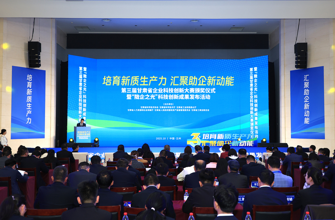 10月14日,第三届甘肃省企业科技创新大赛颁奖仪式暨“陇企之光”科技创新成果发布活动在甘肃科技馆举行,全面展示了甘肃省企业科技创新的丰硕成果与强劲活力。